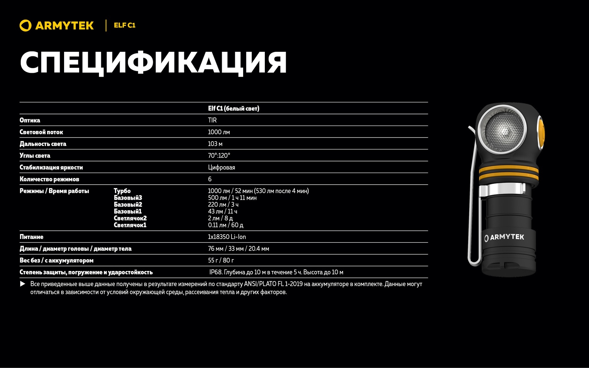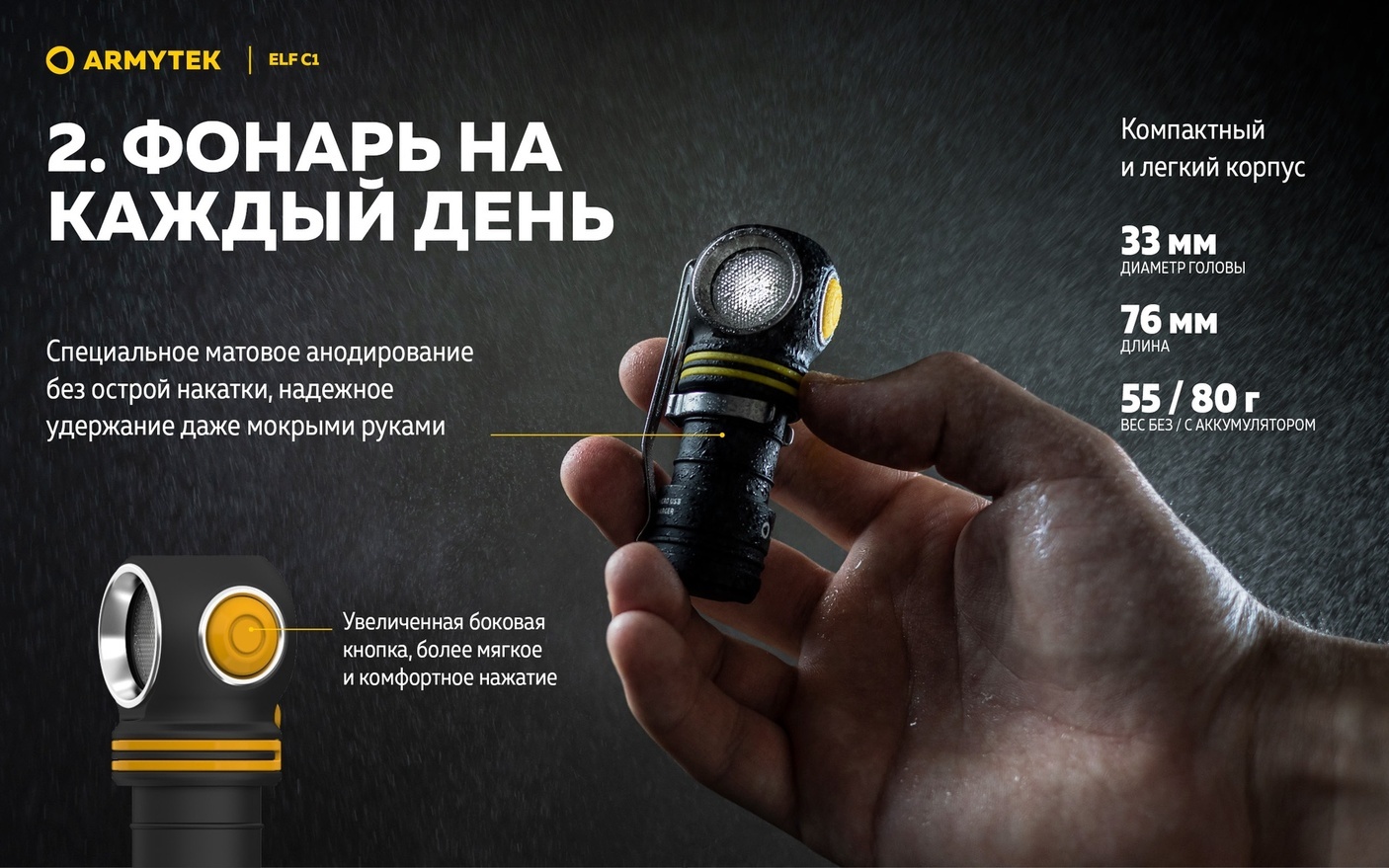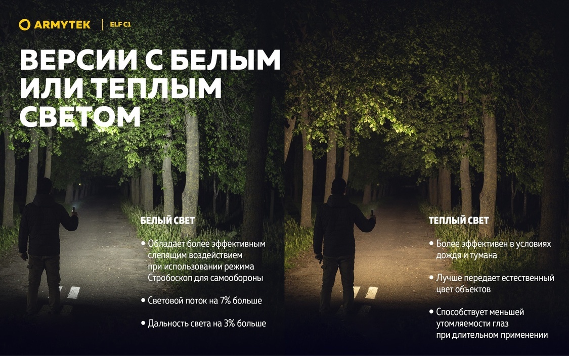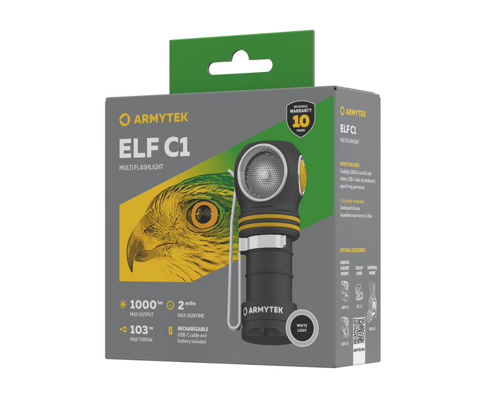 ArmytekElf C1 — это надежный и универсальный источник света, сочетающий высокую производительность с компактностью и удобством использования в самых разных условиях.