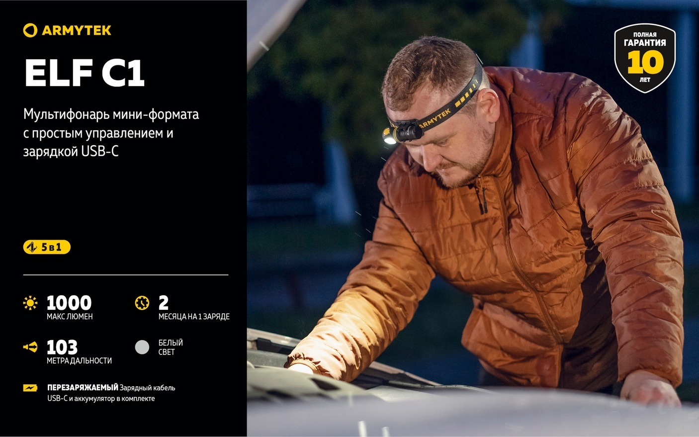 Armytek Elf C1 — это компактный и легкий мультифонарь с мощностью до 1000 люмен, созданный для повседневного использования и активного отдыха.